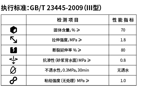 特别适用于厨房、卫生间等隐蔽防水工程,在长期浸水环境下表现尤为优异。 |